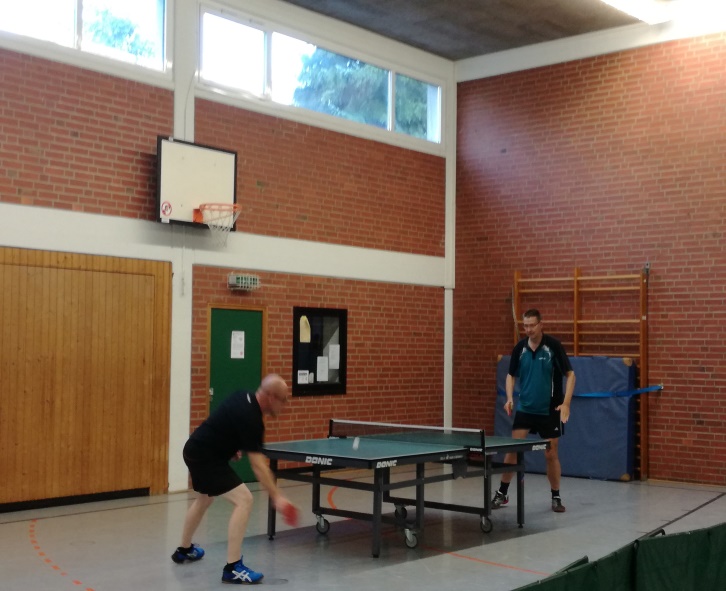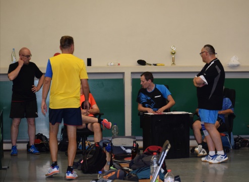 Wir spielten in zwei Vierer- und zwei Fünfer-Gruppen. Am stärksten besetzt war Gruppe A mit Robert, Markus, David, Thomas und Jarne. Das führte zum unglücklichen Ausscheiden des zweimaligen Vereinsmeisters Markus, alleine aufgrund des schlechteren Satzverhältnisses gegenüber David und Robert. Überraschend konnte sich aus den unteren Mannschaften Manfred in seiner Gruppe für die K.O.-Runden qualifizieren.